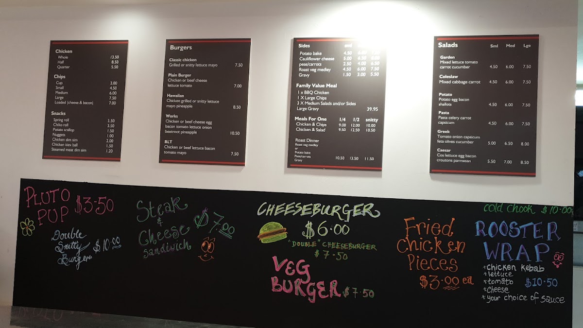 The menu suits customers looking for quick, convenient meals with diverse options from snacks to full dinners. It is particularly appropriate for takeout orders, casual dining at home, or small group catering. Customer experiences suggest the availability of salads and wraps, alongside traditional BBQ chicken meals, confirming a range of healthy and hearty offerings.